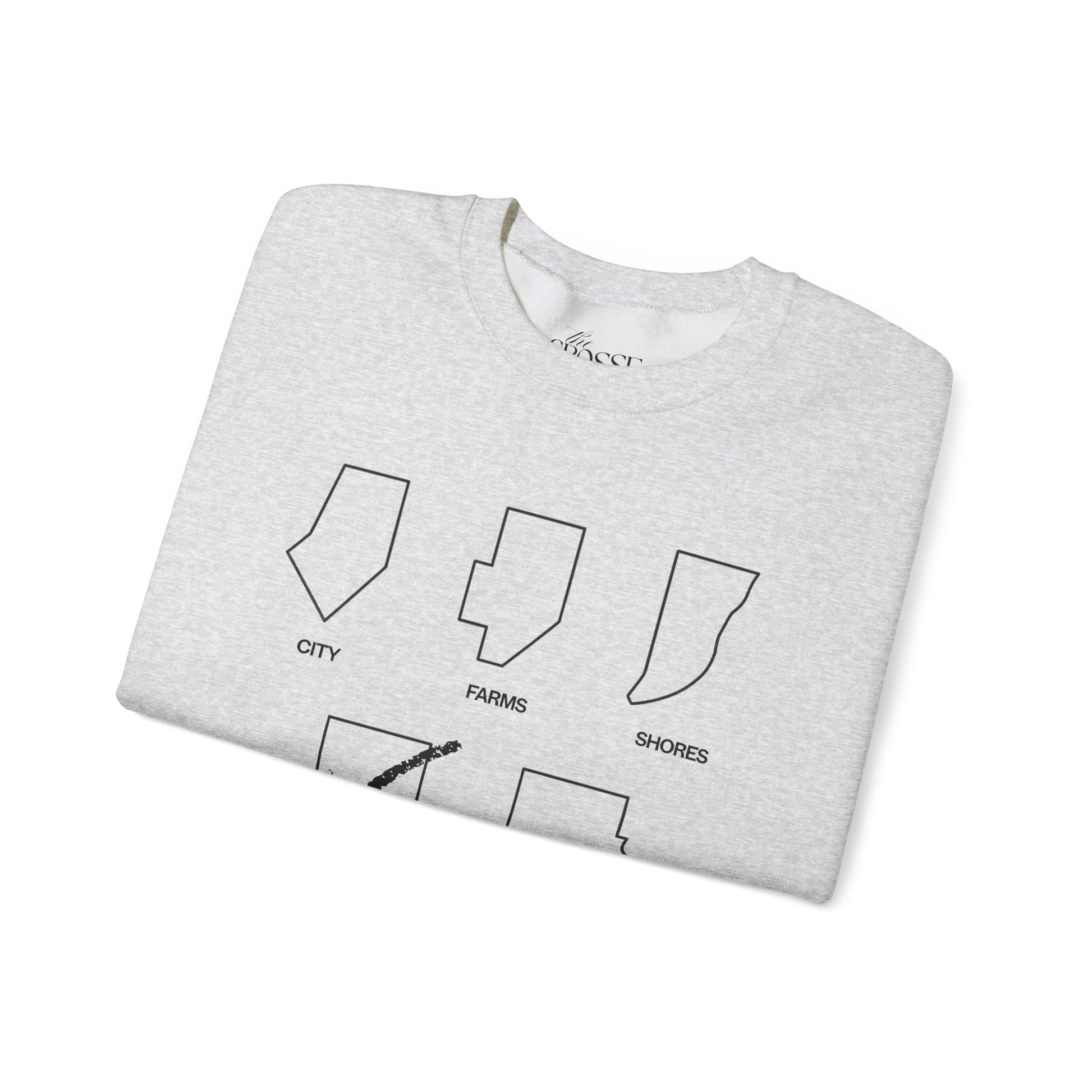 Understated, impossibly soft, and clever in the way of a shared secret, this crewneck offers a discreet nod to those in the know. Expertly crafted from luxuriously comfortable fabric, its classic silhouette allows the artful line-drawing across the chest to take center stage: a rendering of the Grosse Pointes, with one playfully distinguished by a check to denote ‘yours’.